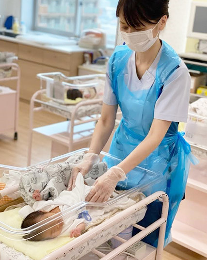 夜勤では、赤ちゃんのおむつの交換や授乳などのお世話をしています。